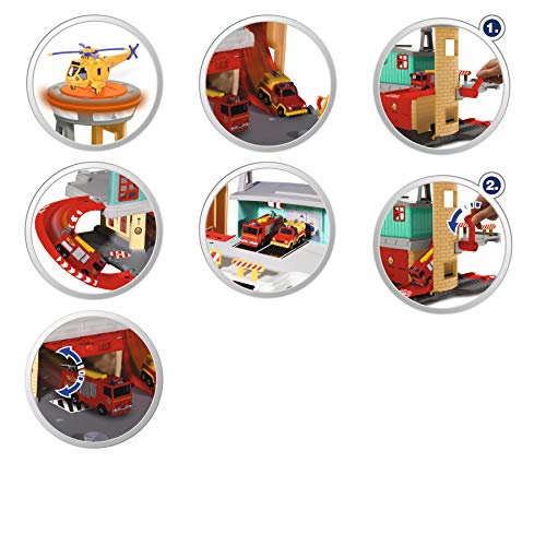 Die liebevoll nachempfundende Feuerwache ist auf 2 Etagen bespielbar, verfügt über eine Schiene mit Hebel als Abschussrampe für Fahrzeuge und eine Garage mit großem Tor zum Öffnen. Zudem kommt dieses Set mit einem Die-Cast-Auto – und hingegen dem Feuerwehrwagen Jupiter. Durch die vielen Stellpätze sind weitere Fahrzeuge vulgo einverstanden aufgehoben.