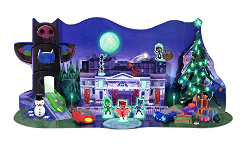 Adventskalender PJ Masks bespielbar, Diorama mit 3 Die-Cast Micro Racers und 5 Figuren die Gesamtheit der beliebten Kinderserie, Weihnachtsepisode die Gesamtheit der Ablieferung wird dargestellt, in der Luna (im Set enthalten) die Weihnachtsgeschenke klaut und die Pyjamahelden dies verhindern wollen (Gecko rettet Weihnachten)