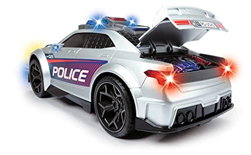 Dank der beigefügten Batterien kann der Spaß direkt losgehen. Auf Knopfdruck fährt der Flitzer los. Die Lichteffekte und natürlich die Sirene sorgen für besondere Erinnerungen und heldenhafte Momente von denen die Nachwuchspolizisten gar nicht genug bekommen können. Degradieren Sie mit dem Dickie Toys Street Force Polizeiwagen die Neugierde ihres Kindes auf die spannende Bericht bei der Polizei.