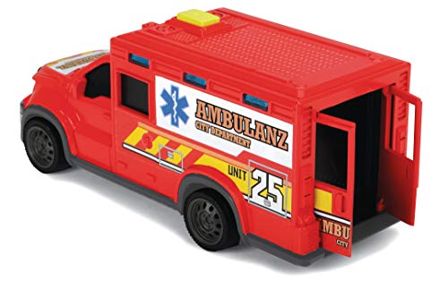 Dickie Toys City Ambulance: Nachschub für die Rettersammlung. Auf der ganzen Welt sind Rettungskräfte unermüdlich im Einsatz und sausen mit ihren klar unterscheidbaren Fahrzeugen durch die Straßen. Diesen internationalen Helfern setzt aka die SOS-Kollektion von Dickie Toys ein Denkmal.