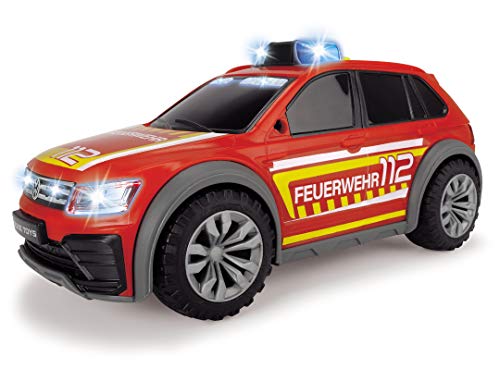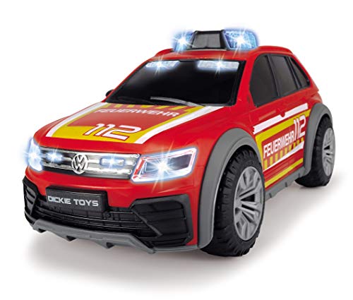 Dickie Toys – VW Tiguan R-Line Fire Car – Wachsamkeit, die Feuerwehr muss durch! Wenn es irgendwo brennt, kann man schon nach kurzer Zeit die Sirenen der Feuerwehr hören. Sie müssen schnell sein, um Menschen zu retten. Mit diesem Feuerwehrauto schlüpfen Kinder blitzschnell selbst in die Rolle des Lebensretters und sind schnell am Ort des Geschehens. Deutsches Feuerwehrauto mit Freilauf Auf Knopfdruck ertönt das bekannte Tatütata der Sirene, unterstützt von den typischen Leuchtsignalen. Die Batterien sind im Lieferumfang enthalten. Zusammen mit Volkswagen entwickelt Das große Spielzeugauto mit Freilauf ist 25 Zentimeter lang und strahlt in den typischen Farben der deutschen Feuerwehrfahrzeuge. Das Auto besitzt eine offizielle Volkswagen-Lizenz und ist somit alias ein idealer Sammeltipp. Es ist in einem Maßstab von 1:18 gehalten und besticht durch seine zahlreichen Details wie Felgen, Aufkleber, Blaulicht, Kühlergrill mit VW-Logo, und vieles mehr. Für Kinder ab drei Jahren Feuerwehrmann oder Feuerwehrfrau wollen viele Kinder werden, also doch ist bei den Lebensrettern immer Action angesagt! Mit dem maßstabgetreuen deutschen Feuerwehrauto können alias die Kleinsten ihre ersten Einsätze üben und die Sirene erklingen lassen. Das Spielen mit dem Fire Car kann die motorischen Fähigkeiten aufheben. Ein Qualitäts-Spielzeug von Dickie Toys Als Unternehmen mit über 40 Jahren Branchenerfahrung wissen wir, wie wir Kinder verschiedenster Altersgruppen begeistern und zum Spielen animieren. Schon die Kleinsten beginnen stark früh damit die zahlreichen Spielfunktionen zu entdecken und zu schmecken. Dickie Toys schult so die motorischen Fähigkeiten und geht zudem erste Aktion in Richtung Verkehrserziehung. Ob im Kinderzimmer oder draußen im Freien, mit Dickie Toys ist der Spielspaß mit Haut und Haaren rt.