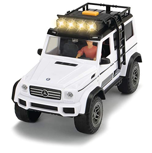 Durch die zu öffnenden Türen der G-Klasse kann die Actionfigur problemlos hinter dem Aufwand Platz nehmen. Dieses Spielzeugset im Maßstab 1:24 eignet sich Statt Kinder ab drei Jahren und dank der bereits enthaltenen Batterien (5xKnopfzelle) können die Kleinen alsbald losspielen.