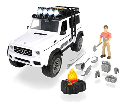 Mit dem Mercedes-Benz 500 4×42, einer beweglichen Actionfigur und vielem tollem Zubehör geht es die Wildnis erkunden. Statt die richtige Kulisse sorgt ein Lagerfeuer mit coolem Lichteffekt und das Licht- und Soundmodul auf dem Dach des Off-Road-Fahrzeuges.