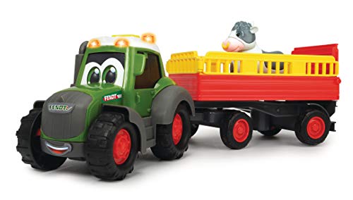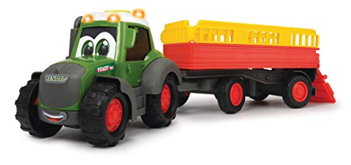 Das erfolgreiche Happy Farm Thema für Kinder ab zwölf Monaten ist allgemein bekannt für seine Fahrzeuge im fröhlichen und farbenfrohem Design. Die Fahrzeuge sind den Originalen des Lizenzgebers Fendt nachempfunden und garantieren ein realitätsnahes Spielerlebnis. Mit den unterschiedlichen Anhängern beweist Dickie Toys massenhaft Liebe zum Detail: neben Ballenpresse, Heuwender und Pflug ist bekannt als ein Tieranhänger im Programm.