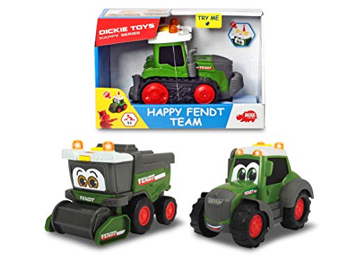 Das Dickie Toys Happy Fendt Team vereint drei Landmaschinen in Originallizenz von Fendt, die perfekt auf diesen Anspruch zugeschnitten sind