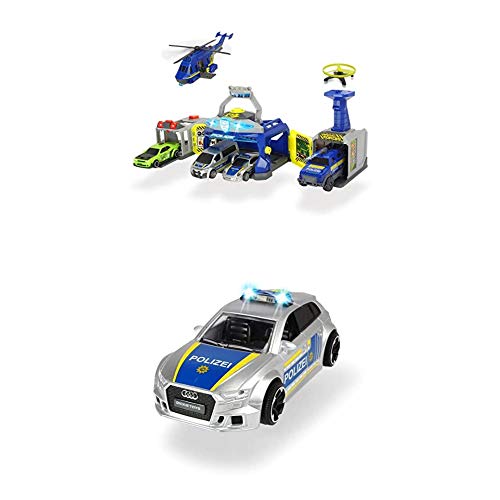 Wie hält man Schurken am besten auf? Mit einer ausgeklügelten Straßensperre! Alles, was dazu in der Spielzeugstadt nötig ist, bringt die Dickie Toys Audi RS3 Polizei gleich mit.