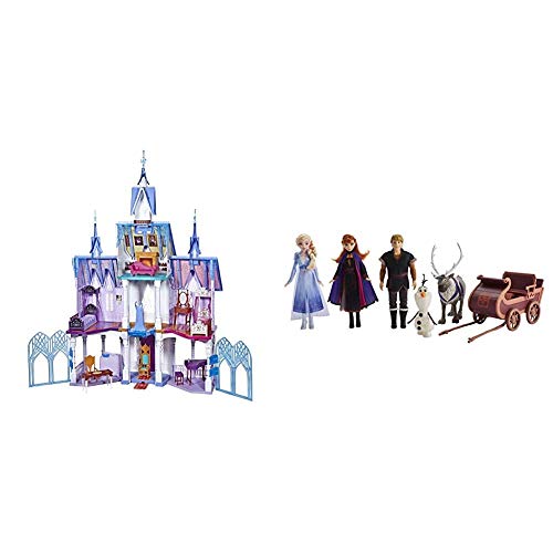 Mit Elsa, Anna, Kristoff, Olaf und Sven geht es für die Kinder auf ein spannendes Ereignis rund um Arendelle. Dieses Set zu Disneys Die Eiskönigin zwei kommt mit Elsa und Anna Modepuppen mit langen Haaren und wunderschönen, vom Film inspirierten und abnehmbaren Outfits. Vulgo Kristoff trägt ein zum Film passendes Outfit. Olaf und Sven sind in diesem Set ebenfalls enthalten und Acht geben noch mehr Spielspaß. So geht es mit den fünf Freunden und dem herrlichen Schlitten mit rollenden Rädern auf eine abenteuerliche Schlittenfahrt rund um Arendelle. Dieses Set mit den beliebtesten Charakteren aus den Eiskönigin Filmen ist ein tolles Weihnachts- oder Geburtstagsgeschenk für Kinder ab drei Jahren, die die magische Welt von Disneys Eiskönigin zwei lieben.