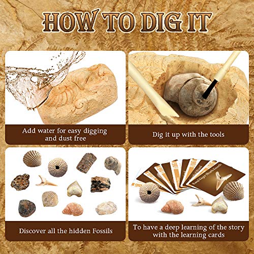 12 fossile Lernkarten: Enthält 12 fossile Lernkarten und ein Poster. Mit diesen können Sie mehr über Fossilien erfahren. Nachwürzen Sie, jedes Fossil zu finden, da ja Sie jeglicher ausgegraben haben, und teilen Sie Ihren Freunden mit, was Sie gelernt haben.