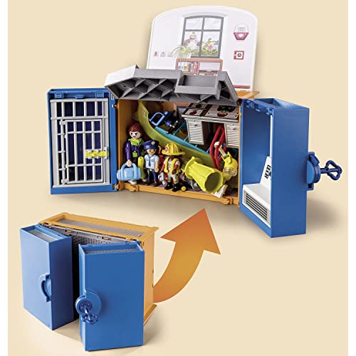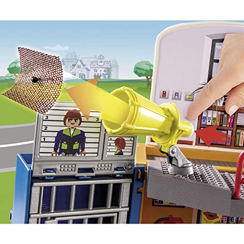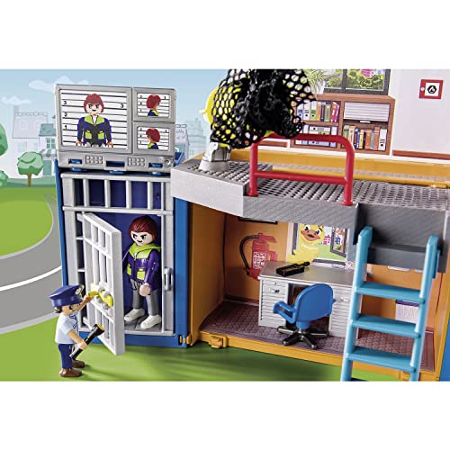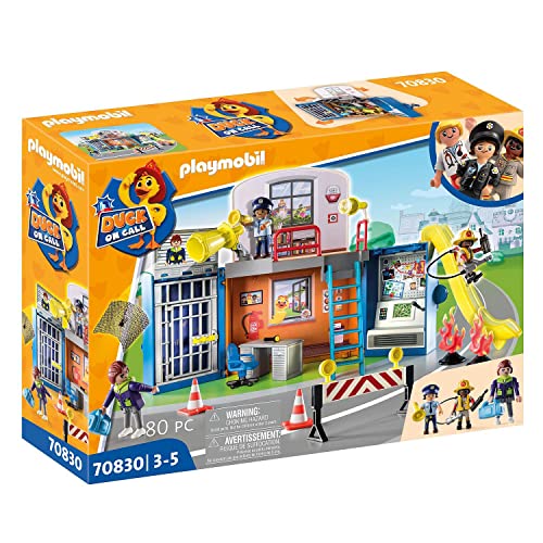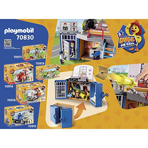 Action-Helden aufgepasst: PLAYMOBIL DUCK ON CALL – Mobile Einsatzzentrale: Im aufklappbaren Koffer kommt eine tragbare Einsatzzentrale durch 2 bespielbaren Ebenen inklusive Gefängniszelle zum Vorschein.