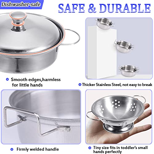 【Klein und realistisch】 Unser glänzendes Kinder-Spieltöpfe und -pfannen Set würde in jeder Küche nasch aussehen. Mini-Größe speziell für Kinder, einfacher für kleine Hände zu greifen und mehr Spaß zu spielen. Hyper-Simulations-Design stellt das echte Küchen-Kochgeschirr noch einmal her. Beste Ergänzung für Küchenspielzeuge