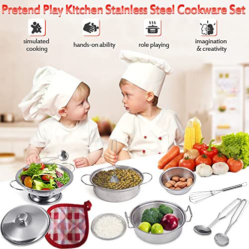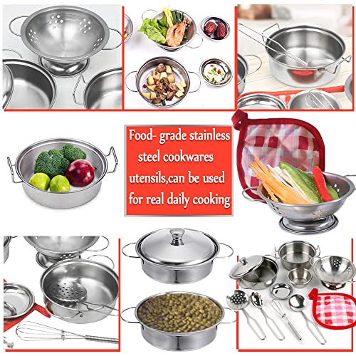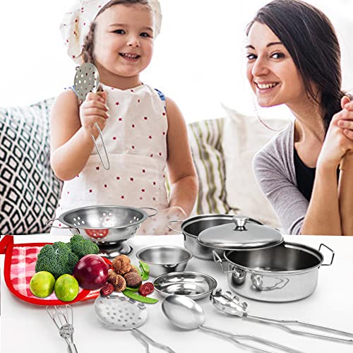 Hervorragende Qualität: Unser Spielküchen-Set besteht aus dickerem, handpoliertem, lebensmittelechtem Edelstahl, der im täglichen Leben als echtes Geschirr verwendet werden kann. Griff mit Schweißverfahren, langlebig und nicht leicht zu brechen. Spülmaschinenfest. Glatte Kanten ohne unschädlich für kleine Hände. Die Größe fällt kleiner aus als auf den Bildern. )】