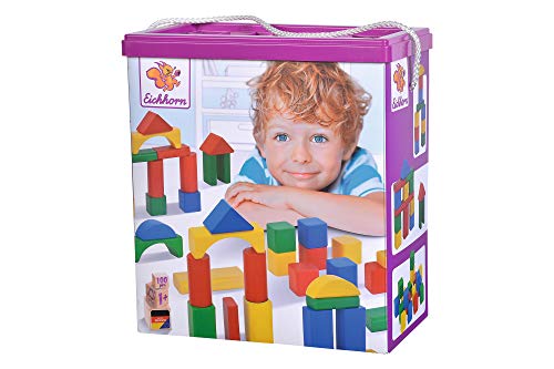 Die 100 bunten Holzbausteine von Eichhorn bieten Kindern ab einem Jahr die Möglichkeit ihrer