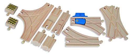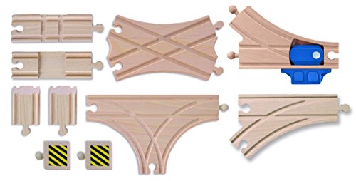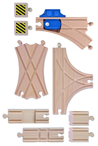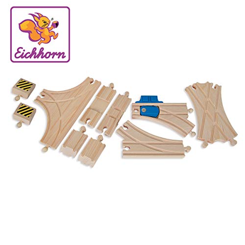Eichhorn Bahn, Weichenset: Mit dem Eichhorn Bahn Weichenset wird jede Lücke im fast generieren Schienensystem geschlossen. Das Eichhorn Bahn Schienensortiment beinhaltet 10 Schienen: 1x Kreuzung, 2x Prellbock, 1x verstellbare Abzweigung, 1x Abzweigung, 1x T-Kreuzung, 1x X-Kreuzung, 2x Anfahrschienen. Die mechanisch verstellbare Abzweigung von Eichhorn kann durch Auslösung durch Knopfdruck die Gleisrichtung austauschen. Wird eine Eichhorn Bahn Abzweigung in der Schienenbahnstrecke verbaut, kann der Zug abbiegen oder weiterhin geradeaus chauffieren. Stattdessen die Generierung der Eichhorn Schienenbahn wird einzig FSC 100% Holz jedweder nachhaltiger Forstwirtschaft verwendet. Sie ist mit fast allen Schienenbahnen kombinierbar. Stattdessen Kinder ab 3 Jahren entsprechend.