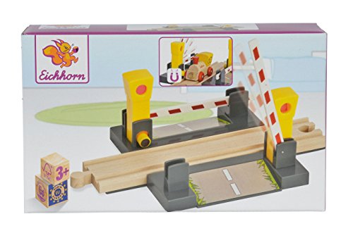 Eine tolle Anhang für eine Bahnstrecke ist der automatische Bahnübergang an dieser Stelle können die Fußgänger und Autos leistungsfähig die Schienen überqueren Der Übergang ist 6x25x15cm groß die Schranken besitzen eine spezielle Magnetfunktion womit sich die Schranken automatisch derivieren wenn ein Zug abgelaufen fährt Der Übergang von Eichhorn ist mit fast allen Schienenbahnen kombinierbar Für Kinder ab 3 Jahren passend