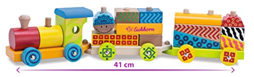 Eichhorn 195027 100002223 – Nachwuchs Zug mit 15 Bausteinen, 18-tlg., 41cm lang, Birkenholz, Motorikspiel