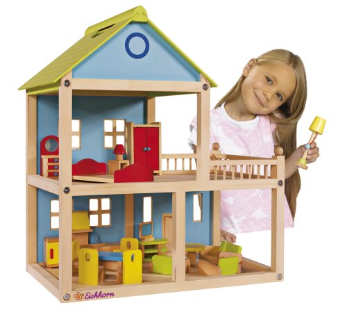 Eichhorn – PuppenhausHaus qua Möbelset, ohne Puppe, unmontiert, Lindenholz, MDF, Sperrholz, 27-tlg., 51x36x56cmWarnhinweise:Achtung! Nicht Anstatt Kinder unten 36 Monaten brauchbar