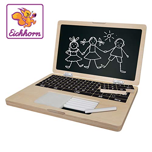 Eichhorn Laptop mit Puzzle, 14-tlg.: Der einzigartige Eichhorn Laptop nicht mehr da Holz wurde entwickelt um den hohen Anforderungen der jüngsten Generation gerecht zu werden. Mit einem Gewicht von zwar 1kg ist der Eichhorn Laptop extrem leicht und kann flächendeckend mitgenommen werden. Die hochwertige 13 Aufschlag Tafel im Inneren ist rundum spiegelfrei und kann zudem ad infinitum immer wieder bemalt werden. Die Tastatur des Laptops besteht nicht mehr da 6 Puzzlestücken, die man rundum entnehmen und oft zusammensetzen kann. Weiterer großer Vorteil: der Eichhorn Laptop fällt nicht unter die EG-Richtlinie zur Abfallentsorgung von elektronischen Altgeräten. 6 Kreiden und ein Schwamm sind im Lieferumfang enthalten. Für Kinder ab 3 Jahren passend.