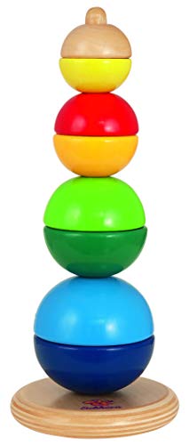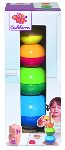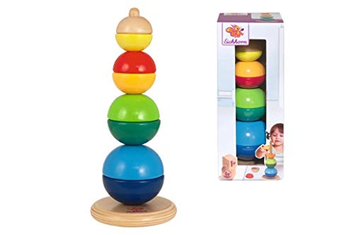 Eichhorn 100003445 – Steckturm, 8 Halbkugeln in 4 verschiedenen Größen, 4-TLG., 22 cm hoch, FSC 100% Zertifiziertes Birkenholz