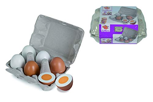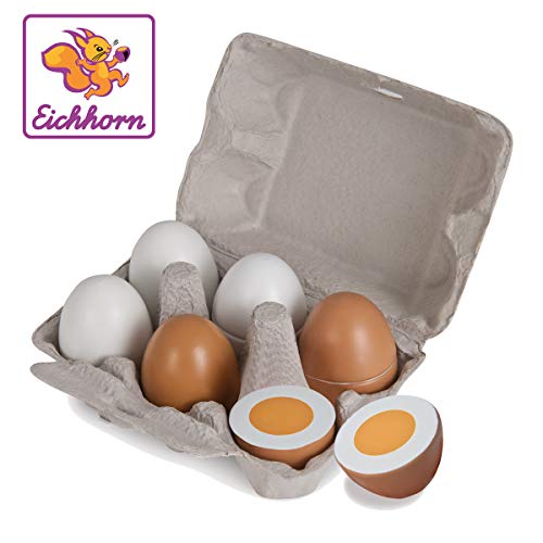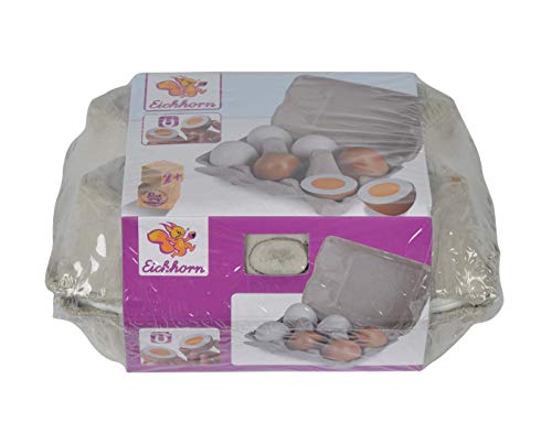 Mit der gefüllten Eierbox von Eichhorn kommt Abwechslung in die Kinderküche. Ob ein Frühstücksei am Sonntag, belegte Brötchen mit Ei garnieren oder als Backzutat für einen selbstgebackenen Kuchen – mit den 6 enthaltenen Eiern ergeben sich unbegrenzte Spielvarianten. Die Holzeier sind mit Hilfe eines Magneten leicht zerteil- und wiederholt zusammensetzbar. Mit der Eierbox von Eichhorn lernen Kinder den Alltag in der Küche und den Umgang mit Lebensmitteln spielerisch kennen. Zusätzlich wird die Fantasie und Kreativität durch das Spielen angeregt, die Interaktion mit Freunden und der Familie gefördert sowie die Geschicklichkeit und Feinmotorik geschult. Dieses 7-teilige Set hat eine Größe von 10,5x16x7cm. Die Holzeier sind für Kinder ab 3 Jahren geeignet.