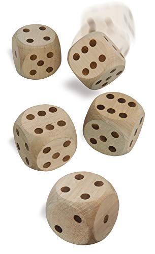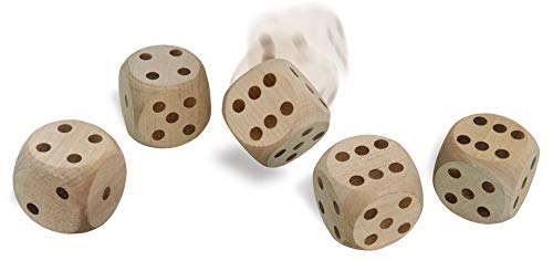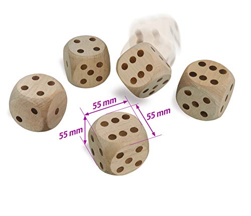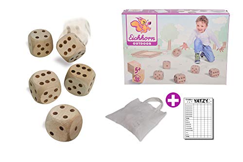 Eichhorn Outdoor 100004542 – Würfelspiel YATZY 5 große Kubus, 1 Stoffbeutel, 1 Ergebnisblock, 5,5×5,5×5,5cm, Birkenholz, Sack 30% BW/70% PE, BSK, 5J+