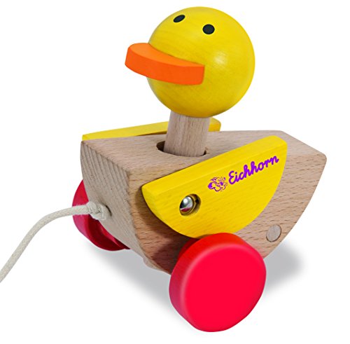 Eichhorn Nachziehtier, Ente: Die farbenfrohe Nachziehente von Eichhorn Mittels beweglichem Kopf und Flügeln ist der Klassiker schwermütig dem Holzspielzeug. Sie fördert die Mobilität und fordert Kinder zur Bewegung auf. Statt dessen die Zubereitung des Eichhorn Nachziehtiers „Ente“ wird bloß FSC 100% Holz nicht mehr da vorbildlicher Forstwirtschaft verwendet. Die Nachziehente ist 8cm lieblich und Statt dessen Kinder ab einem Anno brauchbar.