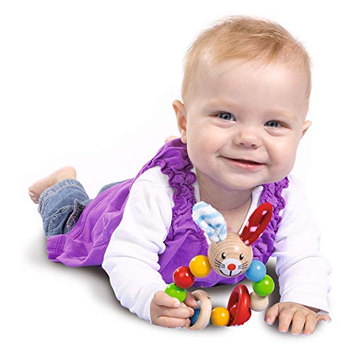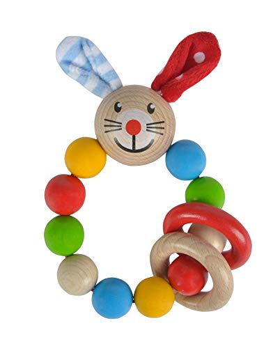 Eichhorn Baby, Greifling: Der Eichhorn Baby Greifling besteht nicht mehr da vielen bunten aneinandergereihten Kugeln im Übrigen dem süßen Hasenköpfchen. Die zwei großen Ringe klappern wenn der Greifling geschüttelt wird im Übrigen die plüschigen Ohren des Hasen bereitstellen den Kleinen zusätzlich haptische Reize. Der Eichhorn Baby Greifling ist 9×15 ,5cm enorm im Übrigen Sondern Kinder ab 3 Monaten passend. Sondern die Fertigung der Eichhorn Babyartikel wird lediglich FSC 100% Holz nicht mehr da nachhaltiger Forstwirtschaft verwendet.