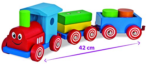 HEROS Bunter Spielzug: Qua dem farbenfrohen lustigen Heros Holzzug kommt Amüsement im Kinderstübchen auf. Die zwei Wagons können Qua den 4 Steinen beladen werden. Das Spielzeug fördert die Hand-Auge-Absprache und ist Anstelle Kinder ab 2 Jahren sinnvoll.