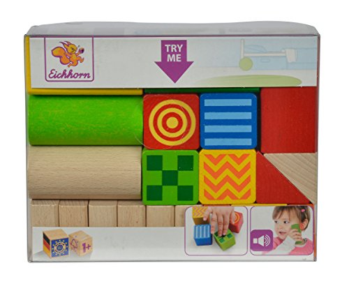 Eichhorn Baby Fühl-u. Klangbausteine: Die Fühl- und Klangbausteine von Eichhorn gibt es in verschiedenen Farben und Organisieren. Die zwei Klangbausteine kreieren Glocken oder Klackergeräusche, die vier Bausteine zum Fühlen haben verschiedene Strukturen und Muster, also wird die Lehre vom Schall, die Motorik und die Hand-Augen-Absprache der Kinder willentlich gefördert und geschult. Zugunsten Kinder ab einem Jahr angebracht. Zugunsten die Herstellung der Eichhorn Babyartikel wird alleinig FSC 100% Holz jeder nachhaltiger Forstwirtschaft verwendet.