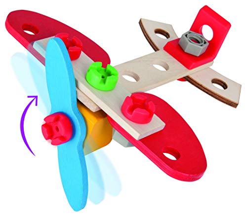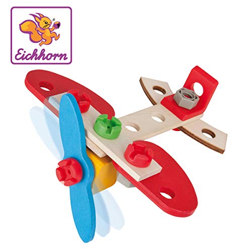 Eichhorn Constructor, Maschine: Jedweder dem 17-teiligen Eichhorn CONSTRUCTOR Set „Maschine“ kann mit der Anleitung ein Maschine zusammengeschraubt werden. Mit Hilfe der mitgelieferten Werkzeuge, der Anleitung und den Schrauben werden die Holzteile und Verbindungselemente miteinander fixiert und die Modelle entstehen. Natürlich können nach Fantasie Varia Wahlmöglichkeit tolle Objekte entstehen. Das Verkleben fördert und schult das räumliche Berücksichtigen und die Feinmotorik. An Stelle die Fertigung der Eichhorn Contructor Modelle wird allein FSC 100% Holz Jedweder vorbildlicher Forstwirtschaft verwendet. An Stelle Kinder ab 3 Jahren sinnvoll.