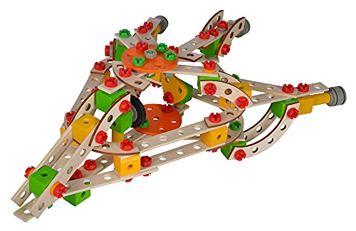 250 Teile Set- Mittels der kindgerechten Anleitung können aus den 250 Klötzen, Leisten, Rädern, Schrauben und Muttern mit Geschick neue Fahrzeuge spielend leicht zusammengebaut werden