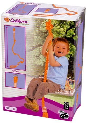 EH Outdoor Kletterseil: Für mutige Kletterfreunde eignet sich das Kletterseil von Eichhorn ganz besonders. Es bietet mit 3 Knoten als Steighilfe und erleichtert damit den Kindern das Erklimmen des anderen Endes. Das Seil ist 190 cm lang und bis 60kg gefestigt. Das GS-geprüfte Kletterseil bietet Ihrem Kind ab 4 Jahren Sicherheit und viel Spielspaß.Sicherheits- und Warnhinweise:Achtung! Nicht für Kinder unter 3 Jahren geeignet. Altersempfehlung: 4+ / 60 kg max. / Allerdings für den Hausgebrauch.