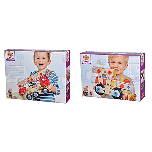 Eichhorn Constructor Feuerwehrauto, 155 TLG., Holz-Konstruktions-Set, 3 Verschiedene Modelvarianten baubar & Constructor…