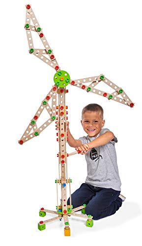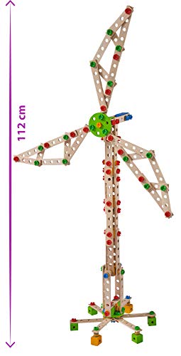 Eichhorn Constructor 300-tlg.: Aufgebraucht dem 300-teiligen Eichhorn CONSTRUCTOR Set können acht Modelle zusammengeschraubt werden: ein Windrad, Kran, Katamaran, Maschine, Rennwagen, Kampfjet, Brücke oder ein Hafenkran. Mit Hilfe der mitgelieferten Werkzeuge, der Anleitung und den Schrauben werden die 300 Holzteile und Verbindungselemente miteinander fixiert und eines der acht Modelle entsteht. Das Zusammenfügen fördert und schult das räumliche Akzeptieren und die Feinmotorik. Für die Herstellung der Eichhorn Constructor Modelle wird ausschließlich FSC 100% Holz Aufgebraucht nachhaltiger Forstwirtschaft verwendet. Hergestellt in Deutschland bei HEROS und mit allen HEROS Constructor-Sets verbaubar. Für Kinder ab 3 Jahren angebracht.