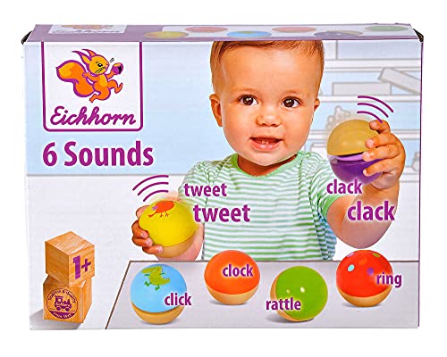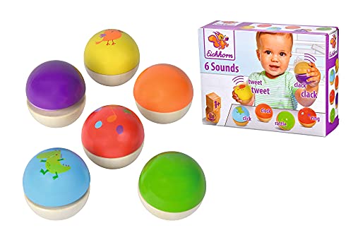 Eichhorn Sound Kugeln: Die sechs bunt gestalteten Holz Sound Kugeln von Eichhorn sind der Hingucker für aufgebraucht kleinen Ballspieler