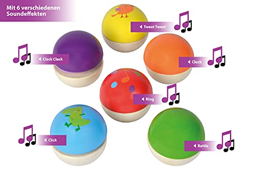 6 verschiedene Soundeffekte und Funktionen: Die Soundbälle sind mit Kügelchen, einem Glöckchen oder anderen Dingen im Inneren bestückt. Beim Spielen und Rollen entstehen also verschiedene Geräusche die garantiert zum Staunen bringen