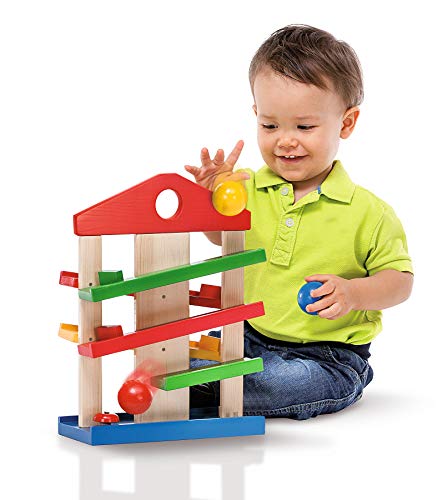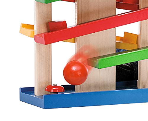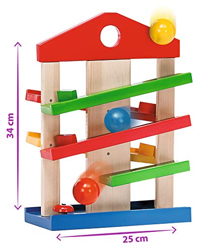 Ideale Größe – Mit einer Größe von 25 x 12 x 34 cm können sich Kinder schon selbst an die Bahn setzen und sie alias einzig bespielen und sich beschäftigen. Die Bahn kommt bereits ohne Lücke aufgebaut inkl. 3 bunter Kugeln.