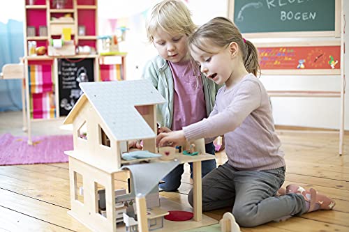 Eichhorn – Puppenhaus mit Zubehör – inkl. Möbel und 3 Figuren, unmontiert, aus Holz, 25 teilig, 53x36x44 cm groß, ab…