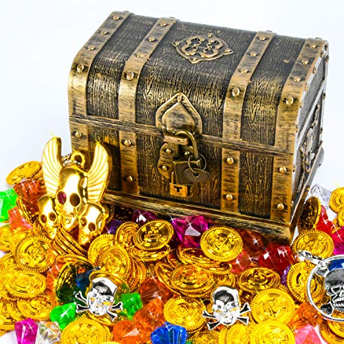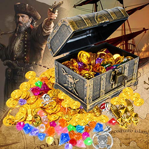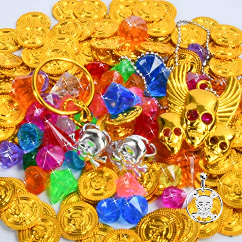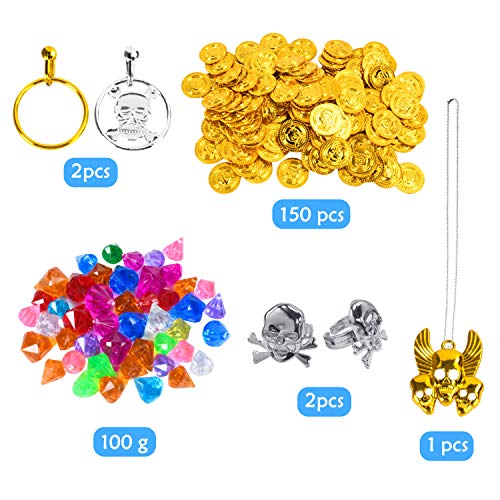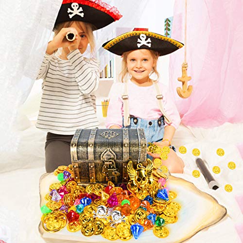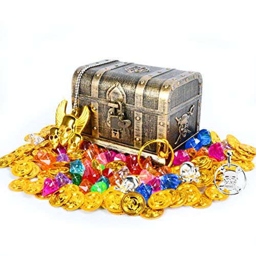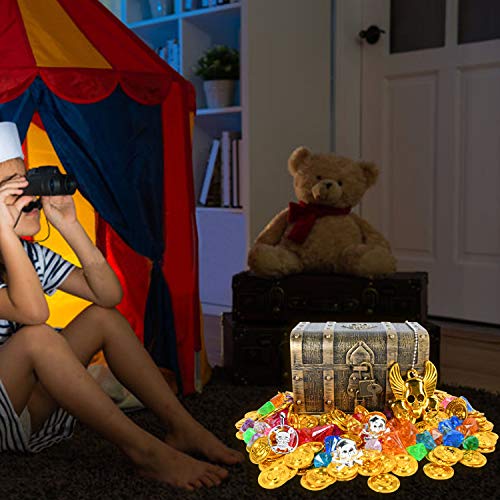 EKKONG Piratenschatz, Piraten Goldmünzen Schmucksteine Set, Schätze für Schatzsuche, Schatzkiste (Klein)