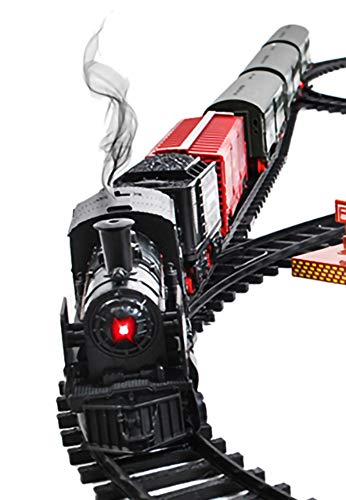 REALISTISCH – der Zug ist so konzipiert, dass er den echten Dampfzug bis ins kleinste Detail nachbildet. Während der Fahrt macht die Lokomotive realistische Geräusche und gibt Rauch aus dem Kamin ab. Im vorderen Bruchstück leuchtet ein Licht, wenn der Zug eingeschaltet wird. Das Set wird mit einem uneingeschränkt sicheren Öl für Kinder geliefert, das wir auf den Kamin der Lokomotive auftragen.