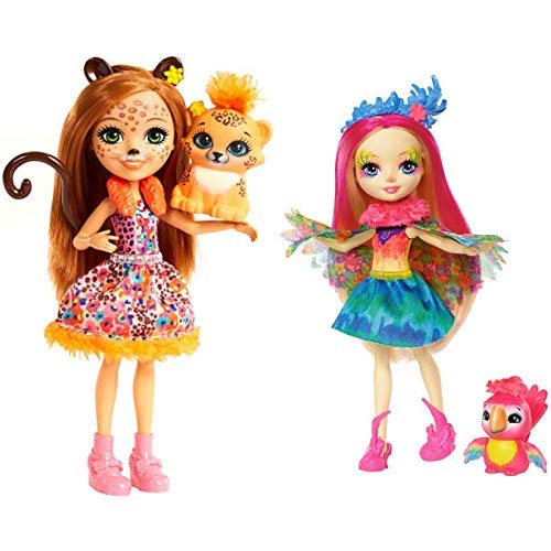 “ Die hinreißende Peeki Parrot Puppe und ihre Papageienfreundin Sheeny bezaubern einfach jeden. Die Enchantimals sind liebevolle Charaktere, die mit ihren besten Tierfreunden auf ganz besondere Weise gekoppelt sind – sie sind immer zusammen und sehen sich sogar angrenzend! Die 15 cm große Puppe kommt mit ihrer Papageienfreundin Sheeny, die mit ihren bunten Flügeln und ihrem pinkfarbenen Gefieder irre niedlich aussieht. Die Peeki Parrot Puppe trägt ein buntes Outfit mit einem hellen Oberteil, einem abnehmbaren Rock in Blau und Grün und einem geblümten Cape in transparenter Optik mit einem flauschigen Kragen in Pink. Ihre pinkfarbenen Schuhe sind mit Details in Form von Papageienflügeln versehen und ihr blauer Kopfschmuck in Federoptik schmückt ihr buntes, gesträhntes Haar – und sie hat sogar bunte Akzente im Gesicht. Kinder werden im Überfluss Freude daran haben, die besondere Verbindung zwischen den Freunden zum Leben zu erwecken und eine Welt zu feiern, deren Motto „“Wir halten für immer zusammen““ lautet. Die Puppen können gesammelt werden, um eine Enchantimals-Welt zu erschaffen und sich eigene bezaubernde Geschichten auszudenken (alle Aufsatz verschlossen erhältlich, einige Aufsatz werden nicht in allen Ländern vertrieben). Enthält eine Enchantimals Peeki Parrot Puppe mit Mode und Accessoires sowie eine Sheeny Papageienfreundin. Abweichungen in Farbe und Gestaltung vorbehalten.“