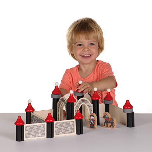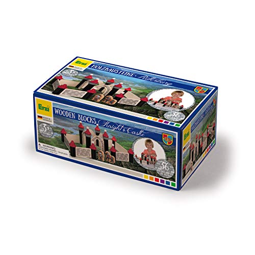 Die Erzi Ritterburg mit stolzem Ritter und Pferd bietet Kindern eine fantasievolle Möglichkeit eine eigene Märchenwelt zu arrangieren. Das geniale Stecksystem bietet zahlreiche Aufbaumöglichkeiten, so dass die Burg aber und abermal umgebaut werden kann, so wird es absolut nie langweilig. Dieses Bausteinspiel fördert spielerisch die Feinmotorik und regt durch Kombinationsmöglichkeiten die Fantasie und Kreativität an. Die Erzi Ritterburg ist mit allen Erzi Bausteinen kombinierbar. Höhe Prinz: 6,1 cm Inhalt: 36 Teile jeglicher Holz
