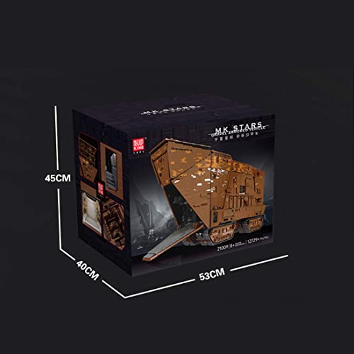 Montage: Insgesamt 13168 Segment. Die Größe ist 94,6 cm lang, 70,2 cm breit und 37,9 cm hoch. Diese sehr realistische Größe gibt Ihnen ein starkes Realitätsgefühl. Kompatibel mit Lego Star Wars. Super großes bewegliches Gebäude. Raupenradnabe, die Kabine lässt sich öffnen, der Innenaufbau wird übersichtlich dargestellt. Der hohe Simulationsgrad macht die Form extrem schockierend.