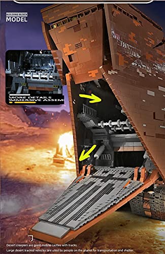 Das Sandcrawler-Modell ist 95 cm lang, 38 cm voll und 70 cm hoch. Die Sandraupe selbst ist überaus gefestigt und konstruktiv überaus ansprechend. Dieser exquisite Technik-Modellbausatz besticht durch herausragende Detailverliebtheit und war speziell für Star Wars-Fans gedacht.