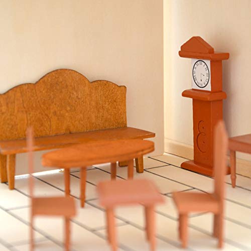 KLASSISCHE EINRICHTUNG – Die robusten Holzmöbel lassen Deinem Nachkomme üppig Platz für Phantasie. Alias für Esszimmer, Schlafzimmer, Küche… Das schlichte Design der Puppenstubenmöbel passt in jedes Zimmer.