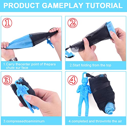 ★ Hochwertige Materialien: Der Fallschirm besteht aus ungiftigem, recycelbarem und umweltfreundlichem Nylon. Fallschirmmänner bestehen aus qualifiziertem ABS-Kunststoff, um sicherzustellen, dass diese Fallschirmspielzeuge NICHT leicht zerbrochen werden.