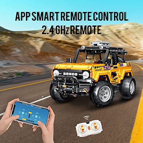 Wilderness Lima Geländewagen ist sinnvoll für 2,4G und App Dual Control System, gefestigt und ohne Störungen, Power-Upgrade, verwenden Sie 2,4G Fernbedienung oder Bluetooth-Anwendung, um viele interessante realistische Funktionen zu steuern, um die Bausteine zu bewegen
