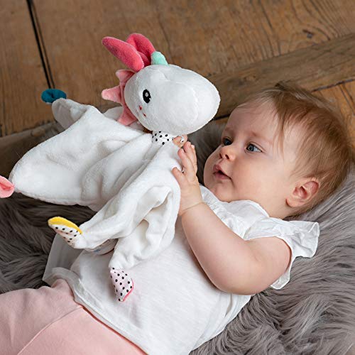 Das niedliche Schmusetuch mit Einhorn-Köpfchen zaubert Babys ein Lächeln ins Gesicht: Es spendet Trost, Wärme, Geborgenheit und wird schnell zum besten Freund
