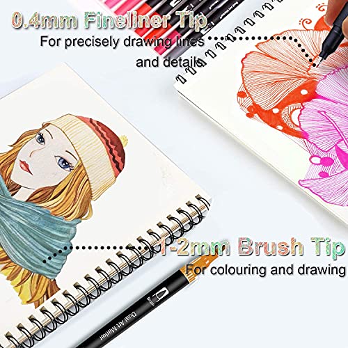 ![Surcotto Dual Brush Pen Set, 48 Farben Filzstifte, Tinte auf Wasserbasis Doppel Malstifte Für Aquarell Bullet Journal Handlettering Kalligraphie Manga, Fasermaler[1-2 mm] und Fineliner[0,4 mm] – Bild 6](https://m.media-amazon.com/images/I/51+tYEALD2S.jpg)