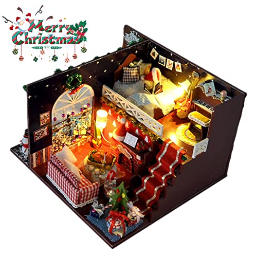 ❤ Schönes Geschenk: Das fertige Modell misst 24,5 cm x 20,5 cm x 15,5 cm. Wenn es sachte gefertigt wird, ergibt es ein wunderschön eingerichtetes Miniaturhaus, charmant und auffällig, perfekt zum Dekorieren. Das Weihnachts-DIY-Miniatur-Puppenhaus-Kit ist für Ihre Freunde und Familien entsprechend.
