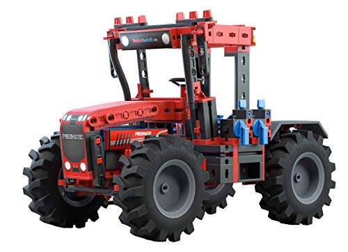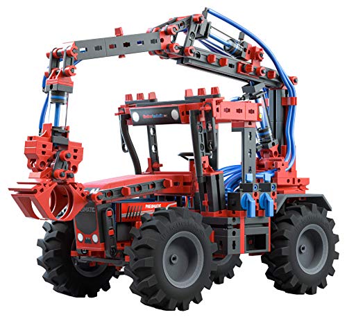 Der Pneumatik Bausatz sorgt mit seinen realitätsnahen Modellen als dem Traktor, Baumstammgreifer, Frontlader oder bekannt als dem zweifachen Kreiselschwader anstelle spannende Ereignis in den Zimmern der jungen Technik-Fans